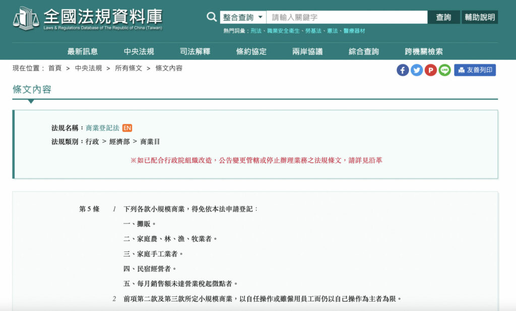 資料來源:全國法規資料庫 小規模商業,得免依本法申請登記